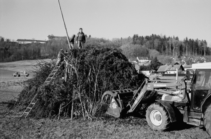 In den Dörfern werden hohe Holzstapel oder Strohhaufen aufgebaut und am Abend angezündet.