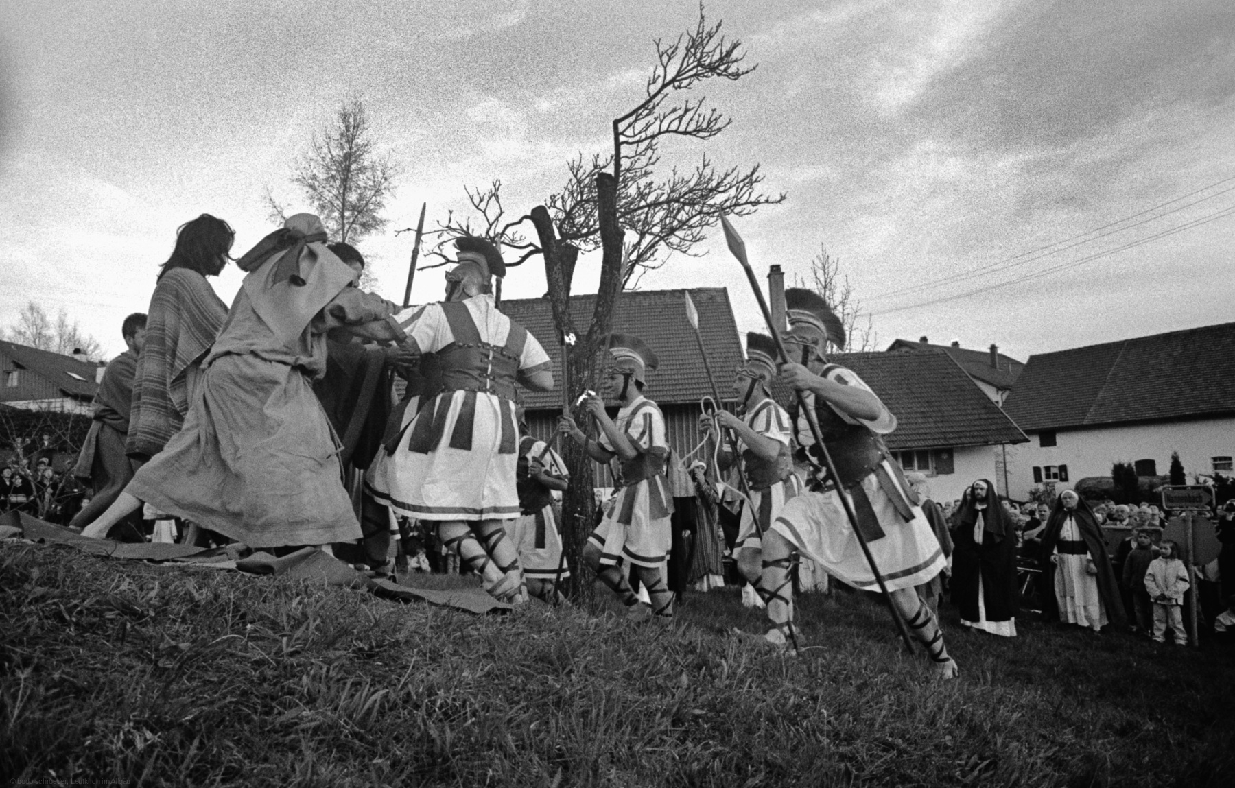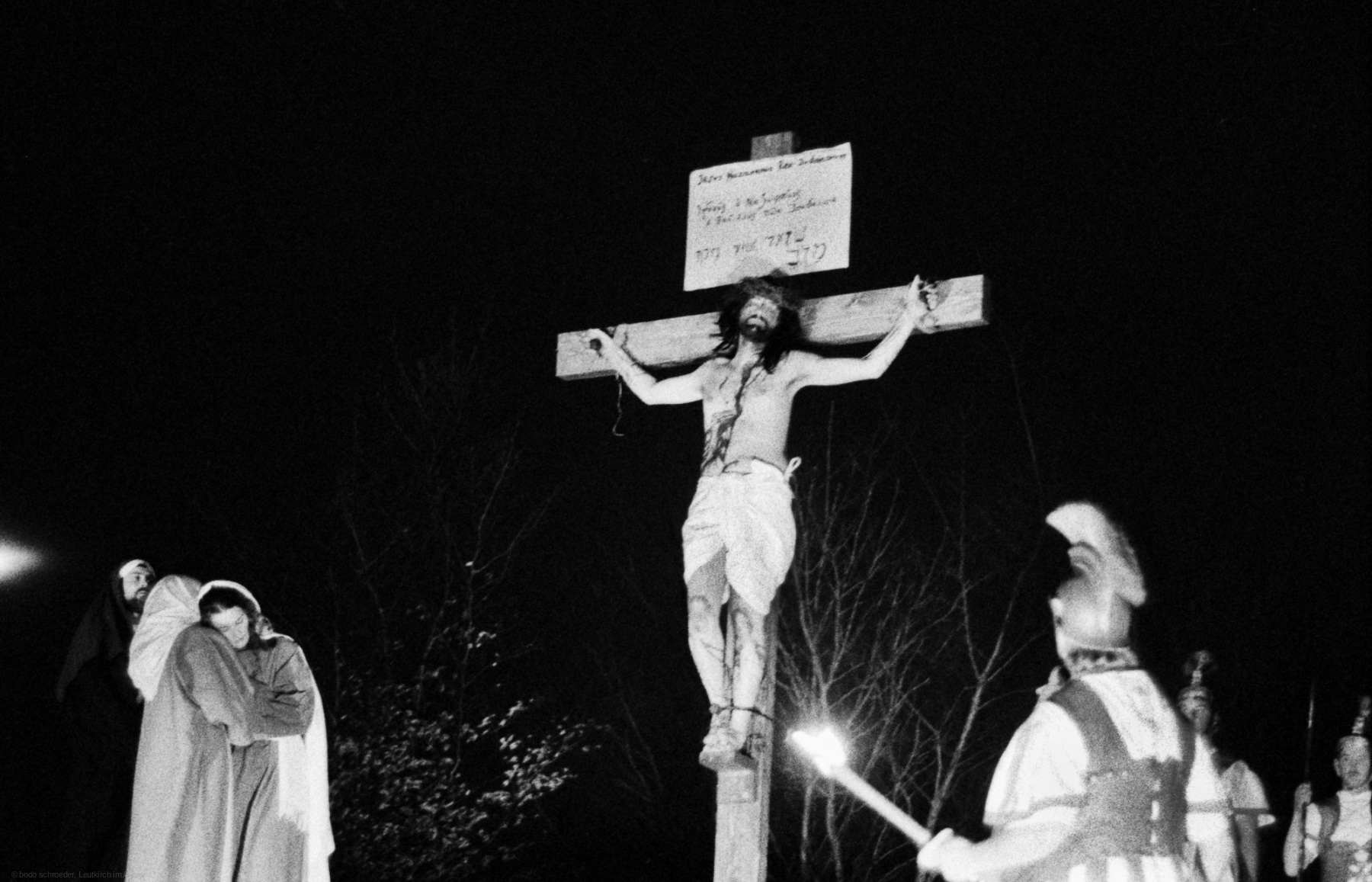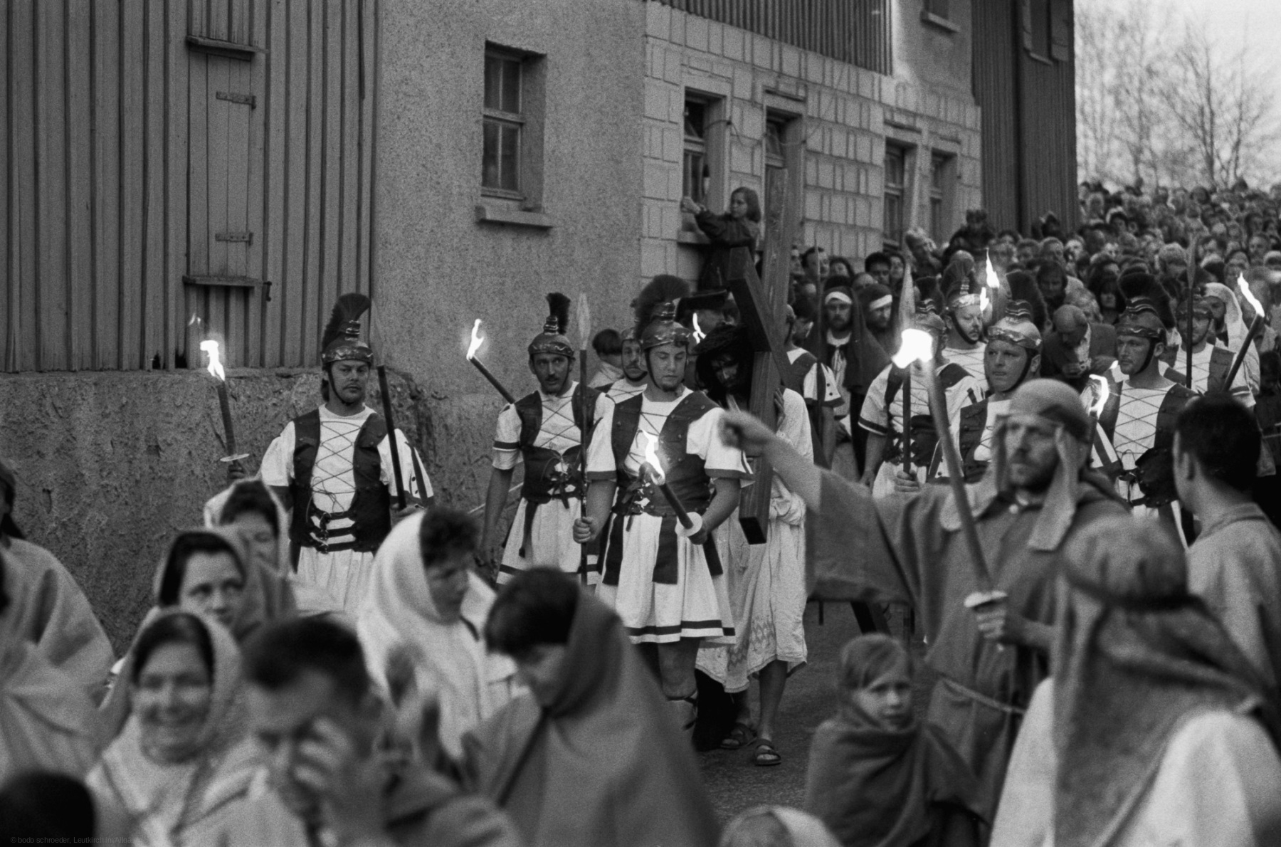 Als Fotograf erlebte ich das Geschehen hautnah mit den Akteuren. Die technische Herausforderung bestand darin, die Szenen in der Dämmerung und Dunkelheit einzufangen, die mit wenigen Lampen beleuchtet waren. Die Darsteller trugen Fackeln, die eine besondere Stimmung schufen. Der Reiz lag in der Schlichtheit des Spiels und dem Verzicht auf technische Hilfsmittel und aufwendige Requisiten. Der Zug bewegte sich durch mehrere Stationen im Dorf, und die Zuschauer wurden Teil derAufführung.