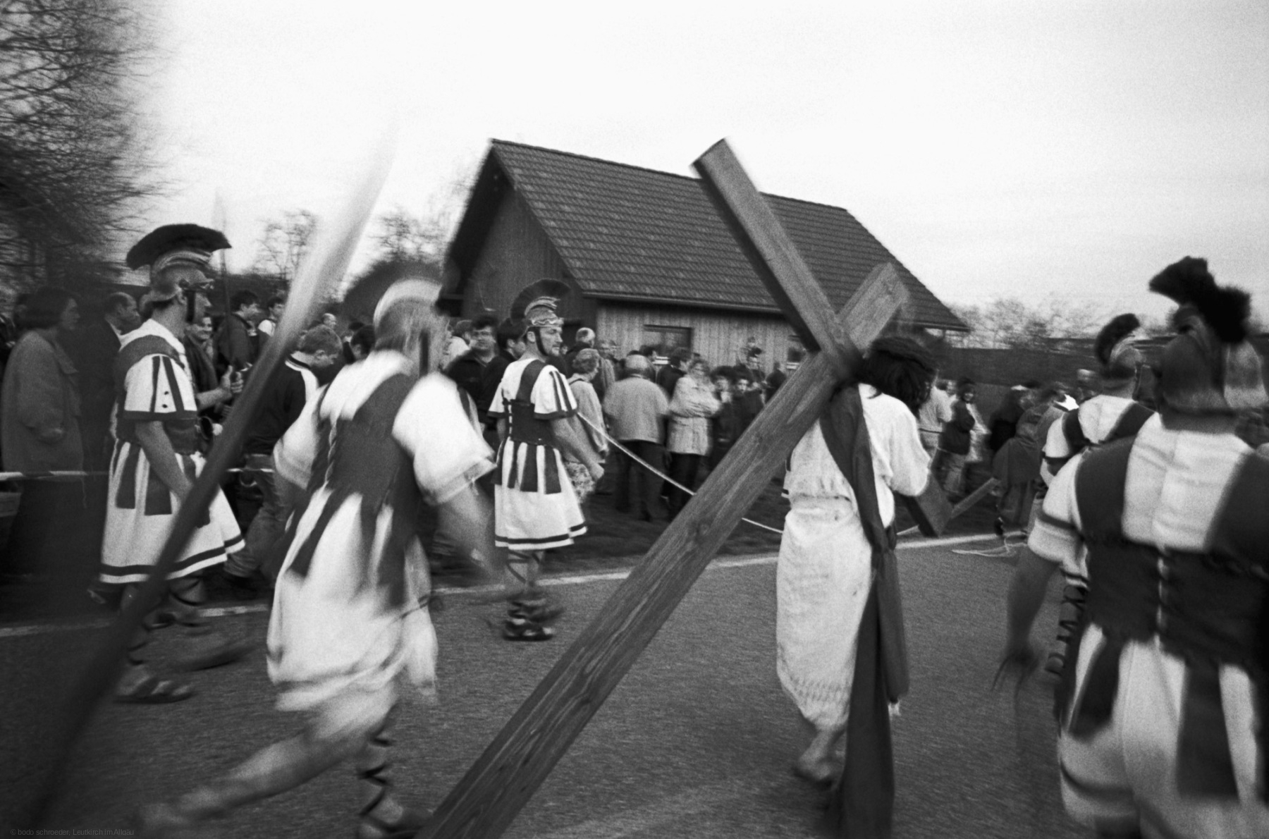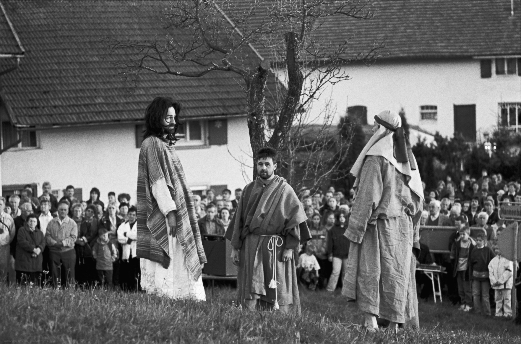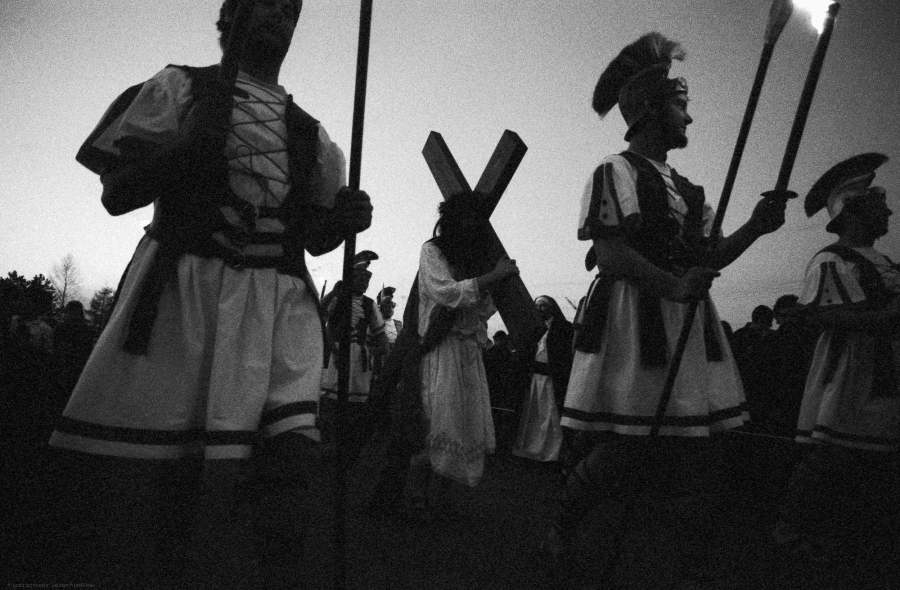 Als Fotograf erlebte ich das Geschehen hautnah mit den Akteuren. Die technische Herausforderung bestand darin, die Szenen in der Dämmerung und Dunkelheit einzufangen, die mit wenigen Lampen beleuchtet waren. Die Darsteller trugen Fackeln, die eine besondere Stimmung schufen. Der Reiz lag in der Schlichtheit des Spiels und dem Verzicht auf technische Hilfsmittel und aufwendige Requisiten. Der Zug bewegte sich durch mehrere Stationen im Dorf, und die Zuschauer wurden Teil derAufführung.